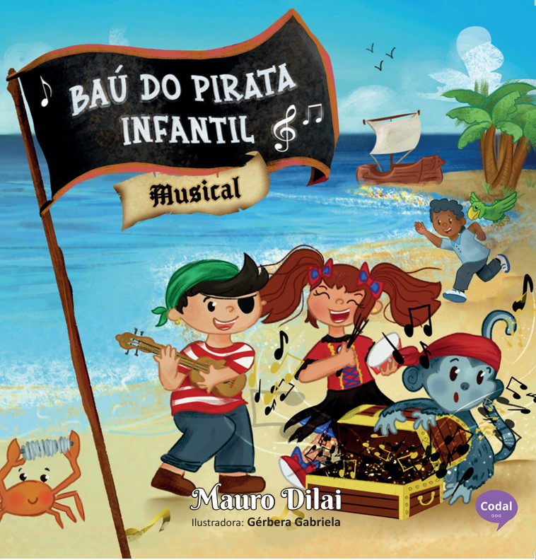 “Baú do Pirata - Musical” é um livro encantador que traz músicas infantis educativas acompanhadas de ilustrações vibrantes. Cada canção ensina de forma lúdica e divertida boas práticas e valores essenciais para as crianças, como alimentação saudável, empatia e respeito às diferenças, além de fazê-las viajar pelo mundo da imaginação e fantasia.